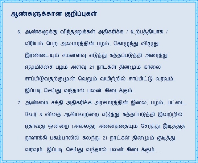 | சித்த மருத்துவ / வைத்தியக் குறிப்புகள் - பாலியல் @ படம் - 12 |